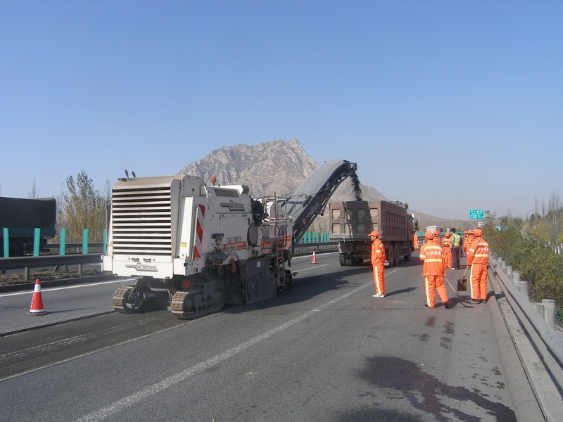 上午10點20分,在張家口方向K121+670~K121+780路段,施工單位按照既定的養(yǎng)護工程交通管制方案,對試驗段的行車道和緊急停車帶部分先做好了隔離封閉,各崗位施工人員和銑刨機、壓路機、自卸汽車、灑水車等配套的機械設(shè)備全部到場就位。公司路面專項工程部與本項工程的監(jiān)理、設(shè)計單位同時到達現(xiàn)場進行監(jiān)督檢查。