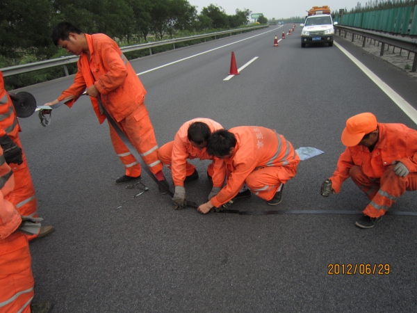 工程部采用裂縫貼處理路面裂縫