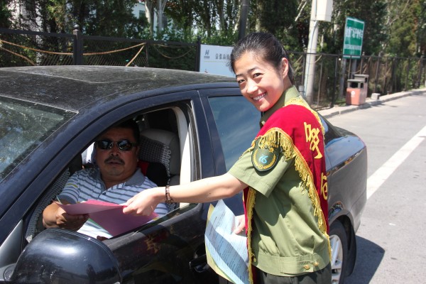 由黨員同志帶頭在收費窗口和收費廣場醒目位置為司乘人員發(fā)放