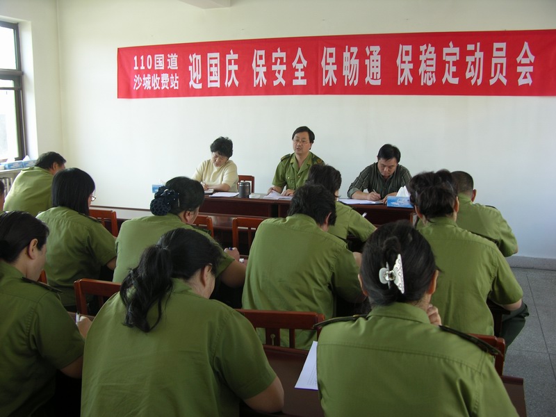 會議首先學(xué)習(xí)了上級關(guān)于做好國慶60周年有關(guān)工作的文件精神,進(jìn)一步提高了大家的政治敏銳性和責(zé)任感,并對110國道沙城收費(fèi)站開展“一迎三保”工作進(jìn)行了動員部署。