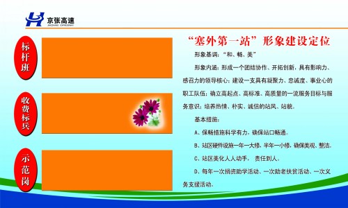 另外,該站將原有的宣傳展板進(jìn)行了重新的排版和制作,改變了以往單調(diào)、呆板的模式,結(jié)合公司2010年工作任務(wù)目標(biāo),融入了東花園收費站“以車為本”的服務(wù)文化內(nèi)涵、“塞外第一站”形象建設(shè)定位等內(nèi)容,成為該站品牌文化建設(shè)的一個亮點。(東花園收費站 許莉莉)