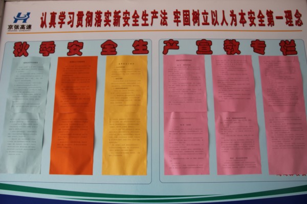 進(jìn)入秋季天干物燥,極易發(fā)生火災(zāi)等安全隱患,為確保全站人員生命及財產(chǎn)安全,雞鳴驛收費站根據(jù)季節(jié)特點易引發(fā)的安全問題,利用宣傳展板制作了秋季安全生產(chǎn)宣教專欄。展板內(nèi)容分別包括:秋季安全小常識、秋季安全行車注意事項、秋季防火十大注意事項、消防安全知識等內(nèi)容,分別介紹了生產(chǎn)生活中易發(fā)生的安全除患和每個人應(yīng)該注意的安全事項,從而提高自我保護(hù)自我預(yù)防的能力,同時,對全站人員的消防安全法律法規(guī)進(jìn)行了宣傳教育,加深了大家對消防安全法律法規(guī)的了解,進(jìn)一步增強了全員的消防安全意識,為全面完成年底的各項安全生產(chǎn)工作奠定基礎(chǔ)。(雞鳴驛收費站 王春燕)